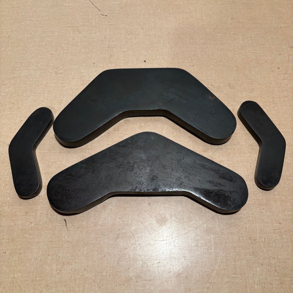 Vintage set of 4D - Fourth Dimension Industries triple tree blanks. Measures 9” wide and approximately .75” thick. Black Oxide oiled finish to preserve until machined. Ships free.