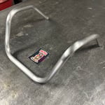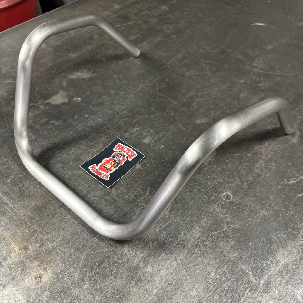 Made from 11g X 1” OD 304 stainless steel measuring 17” wide with 16” of pullback with a total of 110 degrees of bend in a hand brushed finish.