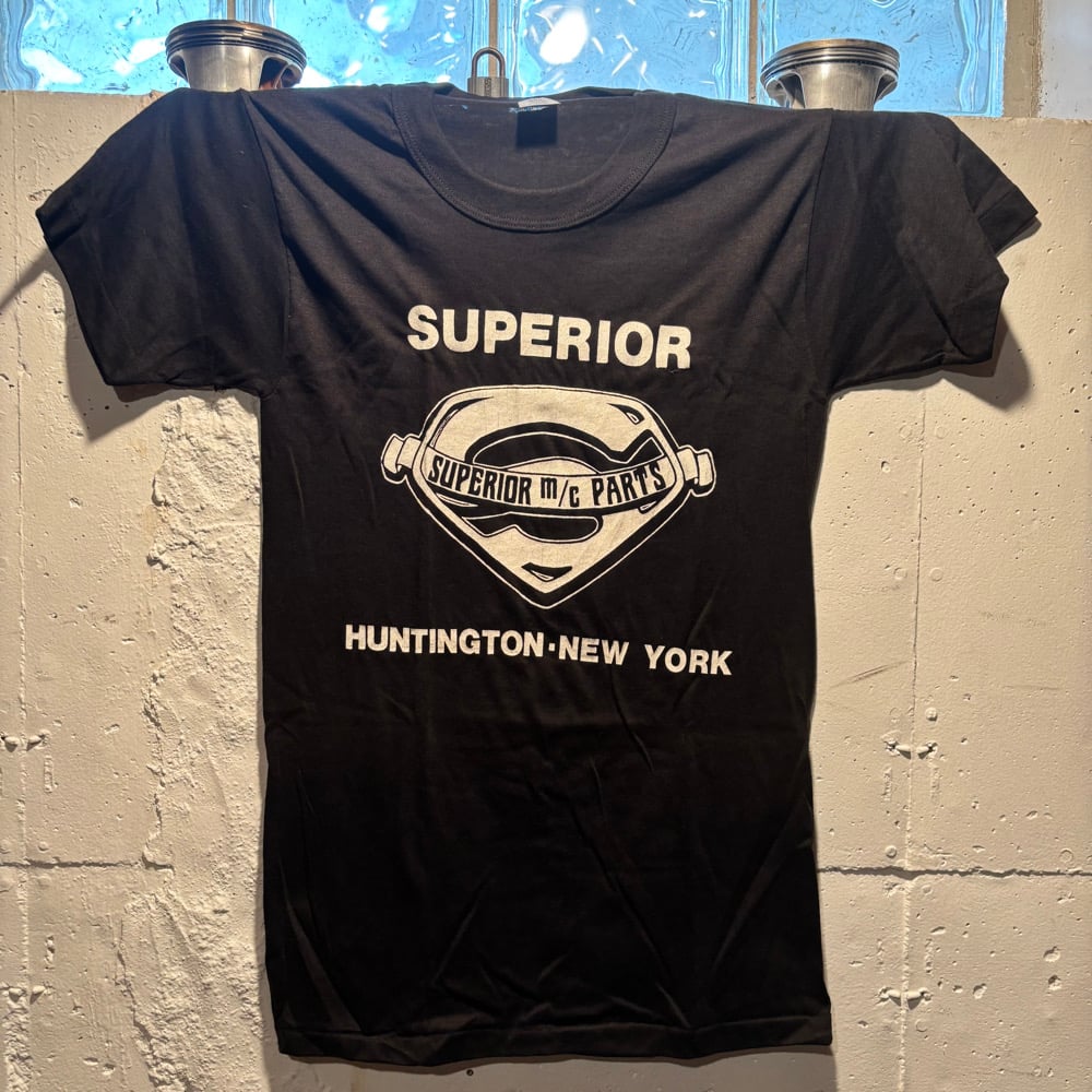 Vintage deadstock Superior shirt size Small 34-36 on black kodel and cotton blend material.